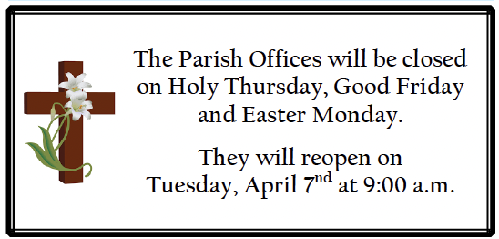 Due to several class cancellations this year, we have added a Religious Education Stations of the Cross on March 31 at 4:00 PM in the Church. All families are welcome to attend – not just those whose classes were canceled.