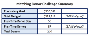 Our parish has come together in a remarkable way through the Matching Donor Challenge. Thanks to your generosity, we surpassed our goals, raising $511,118 from 210 families—including 87 first-time donors. We are so very grateful to all those who helped us reach our goal and to the generous parish families who came together to establish the $1 million Matching Donor Challenge fund – helping us reach a total of $1,511,118 through this effort!
